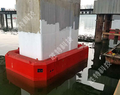 自浮式鋼覆復(fù)合材料橋梁防撞設(shè)施外觀可制作成任何顏色或圖案,設(shè)置成醒目顏色或反光形式,提高橋墩安全性。